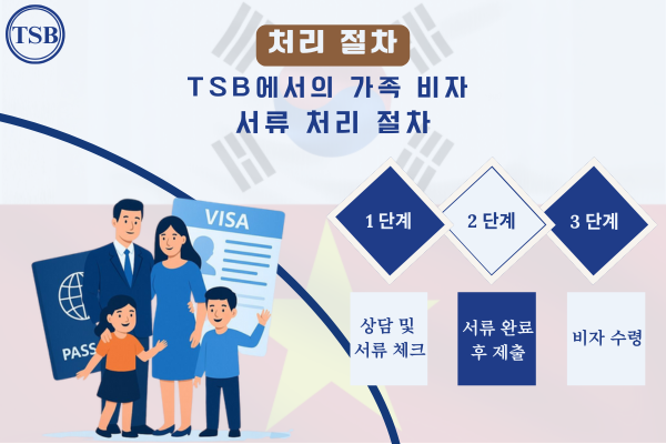 TSB에서의가족비자서비스 TSB 컨설팅은 신뢰할 수 있고 종합적인 가족 비자 서비스를 제공하여 고객이 시간을 최대한 절약할 수 있도록 돕습니다. |